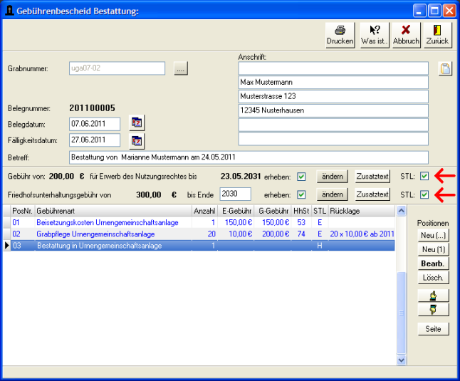 Ein großer Teil Ihrer Daten (Grabnummern, Namen, Anschriften, Datumsfelder u.s.w.) lässt