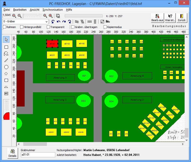 Friedhofsverwaltungsprogramm PC-FRIEDHOF - Digitalen Lageplan erstellen