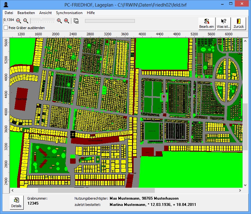 Friedhofsverwaltungsprogramm PC-FRIEDHOF - Fertig erstellter digitaler Lageplan